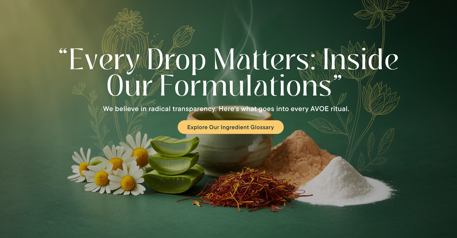 We select plant-based, Ayurvedic herbs and clinically trusted actives that are ethically harvested, locally where possible. Only ingredients that benefit the skin — never fillers.