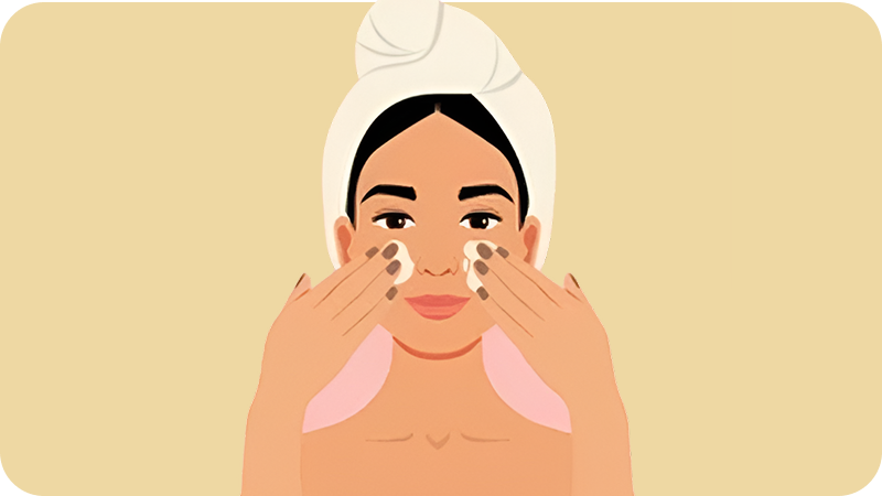 After cleansing and nourishing the skin, take a pearl-sized amount of Trikavach into your palms. Warm it gently between your fingers—honoring the act of self-care
